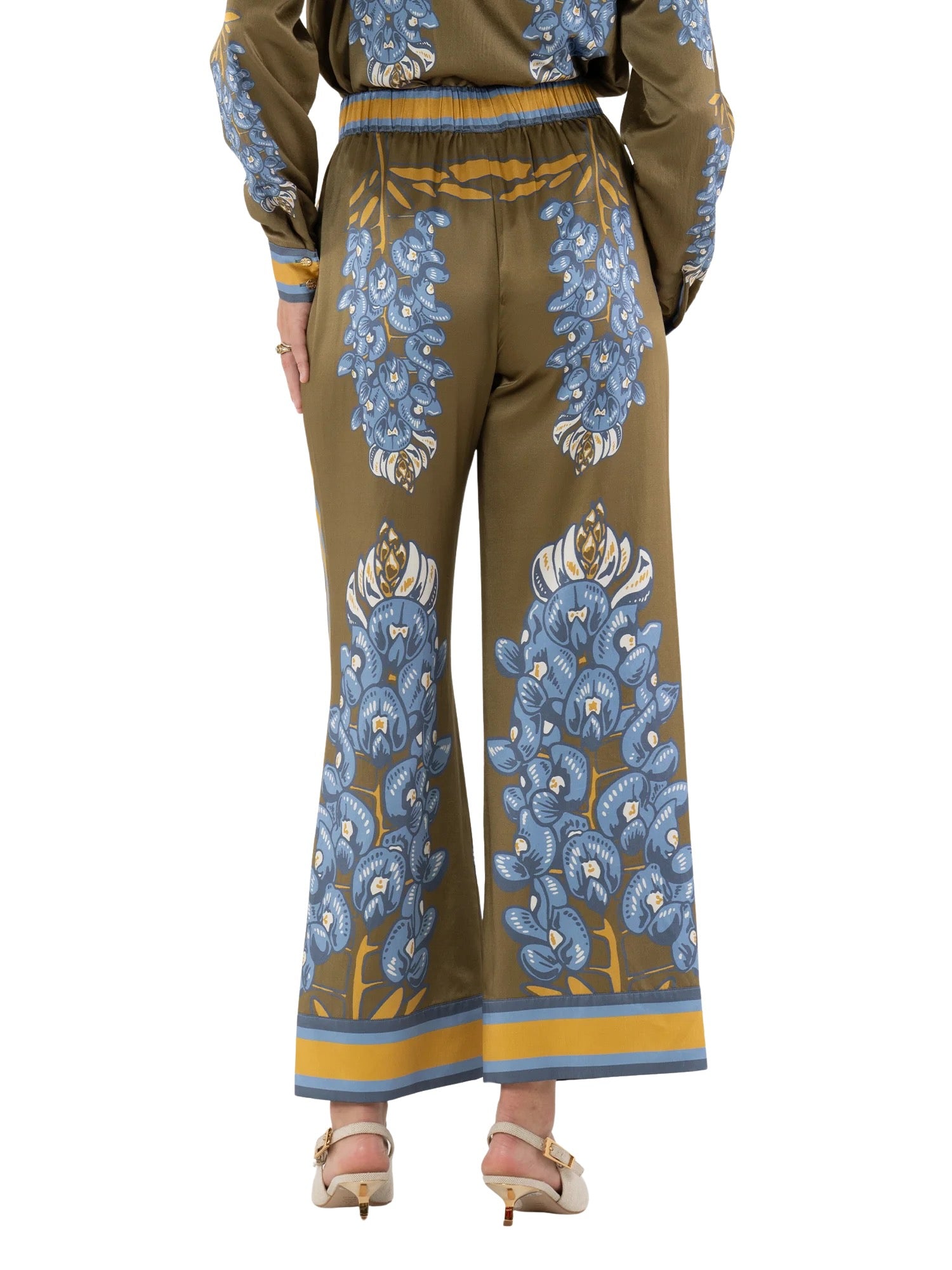 The Slumber Pant in Bluebonnet offers the perfect balance of comfort and elevated design. Crafted in a silk blend, this style features a drawstring elastic waistband, side pockets, and a relaxed straight-leg silhouette that flows with ease. The placed Bluebonnet print—a nod to Texas’ iconic state flower—brings a western-inspired motif to life with a whimsical and feminine touch. Coordinating border trim along the hem and side seams frames the print beautifully, adding polish to the breezy fit.