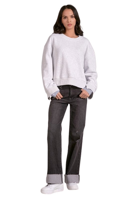 The Margot Top is a mixed media everyday essential. With long sleeves, subtle stripe accents, and a mix of knit and woven textures, this piece delivers structure and softness in equal measure. It’s the ultimate layering hero — wear it under coats or solo for an effortless, polished look.